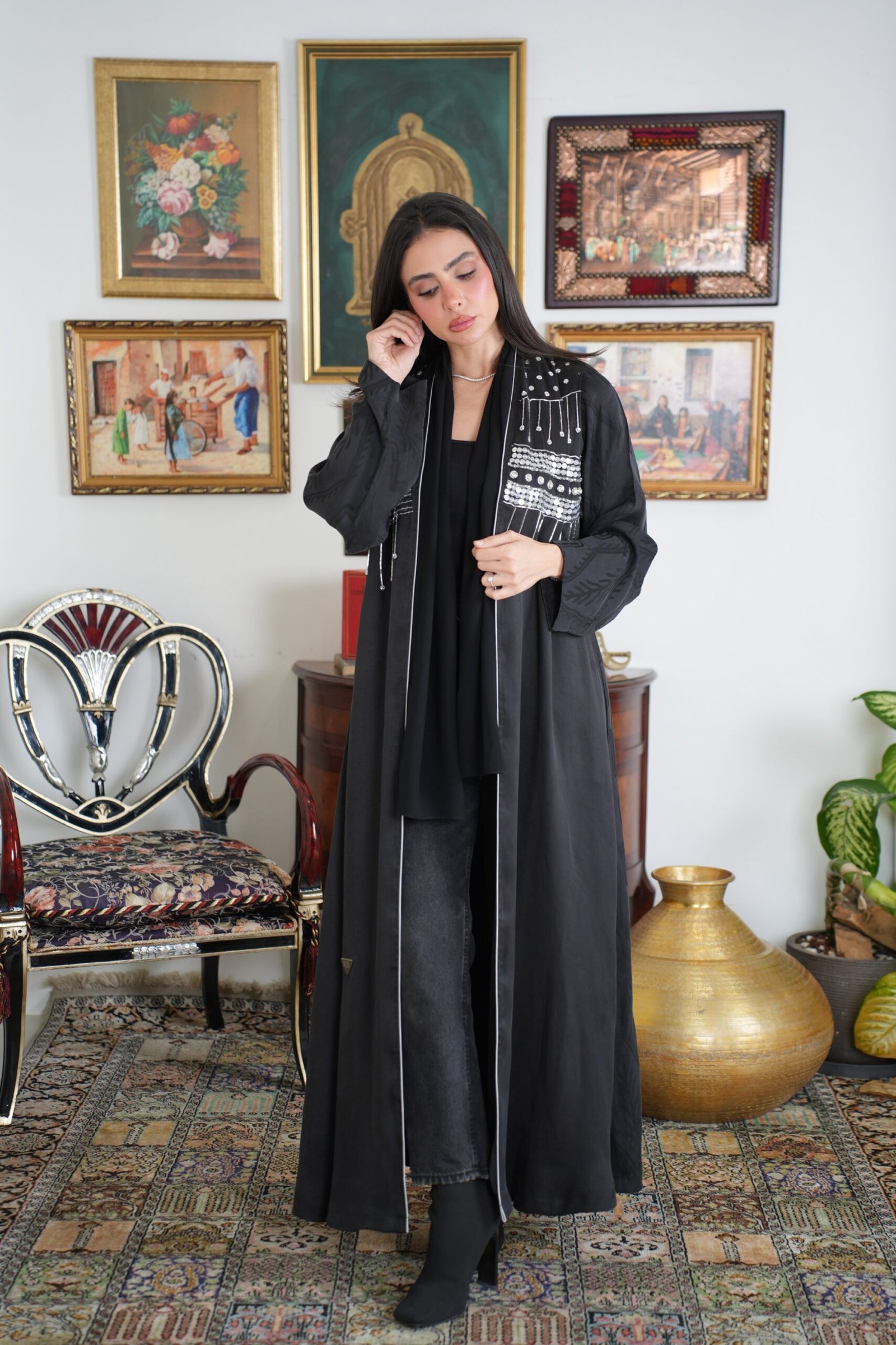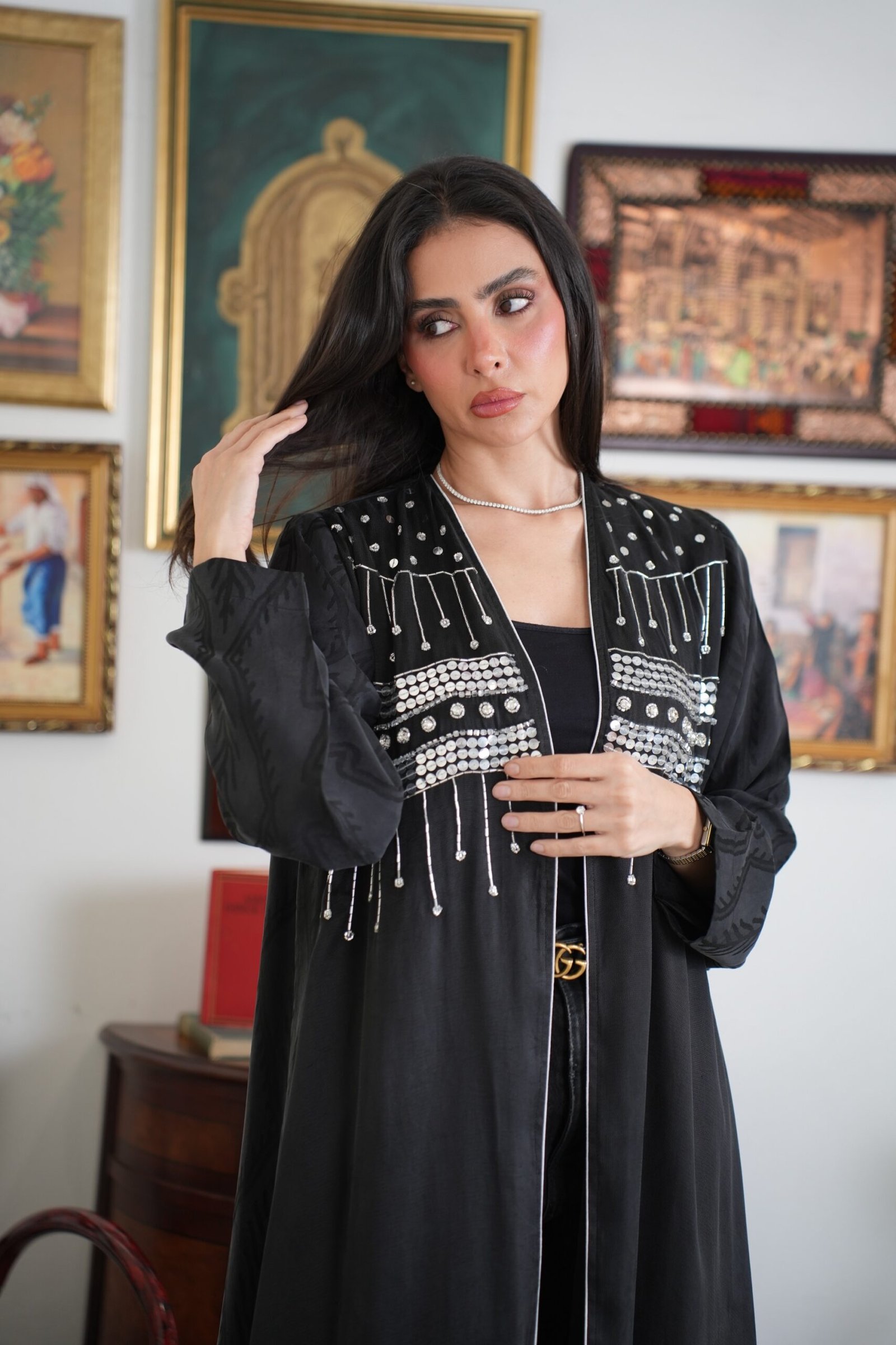 عباية حرير بيور مع الشك اليدوي والترتر ✨