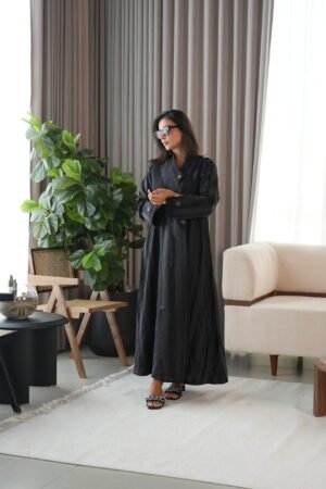 عباية بليزر باللون الأسود، مصممة بخامة فاخرة من مزيج اللينن والحرير الطبيعي، لتمنحك إحساسًا راقٍ بالراحة. تتميز بتصميم أنيق، مع تفاصيل تضيف طابعًا مميزًا ولمسة أنثوية ناعمة، لترافقك بإطلالة متفردة في المناسبات الرسمية.