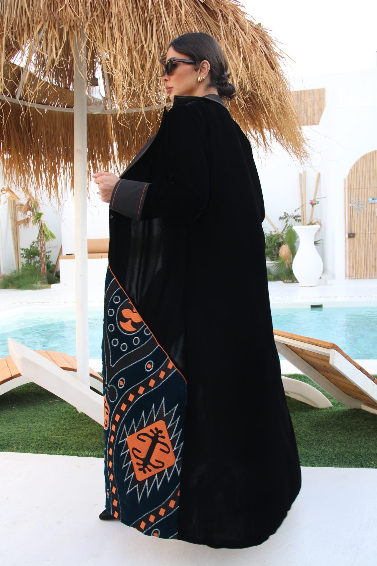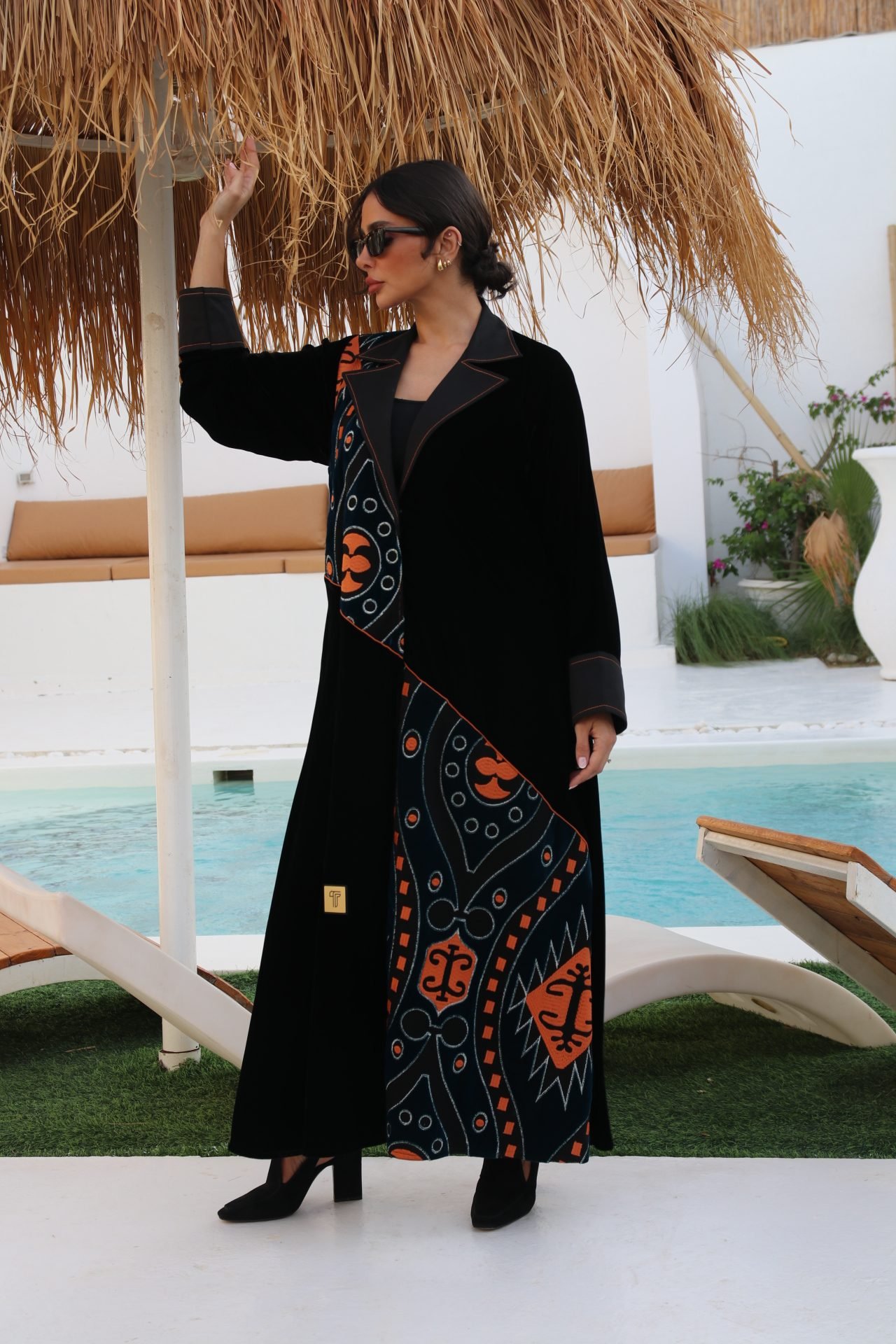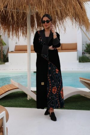بليزر خام مخمل أسود فاخر مزين بتطريز برتقالي أنيق يضفي لمسة من التميز والتفرّد. قطعة مميزة تناسب المناسبات وتمنح إطلالتك لمسة فاخرة ولافتة.